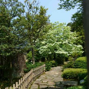 奥に見える白い花の木が「なんじゃもんじゃ」の木です …天徳院にて