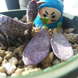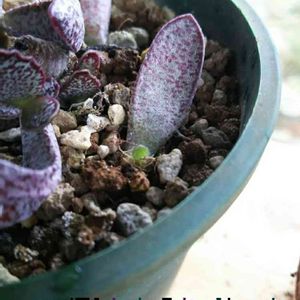 『アドロミスクス紅肌マリアンナエ』名前が長い🤣🌋。 やっとやっと葉挿しから小さい緑の🌱出てきました。 フォォ――(⊙ω⊙)――ッ!♥嬉しい。