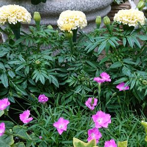 おはようございます。 今日のお花 マリーゴールド ②は通勤途中のホテル前の寄植え。
