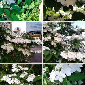 今日のお花 アジサイ4 職場ガーデンのカシワバアジサイたち。 みっちりゴージャスタイプと一重のも。