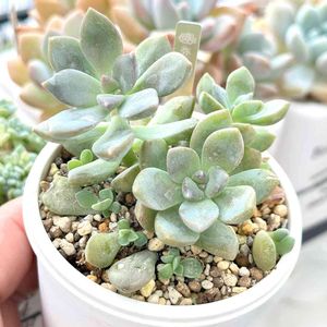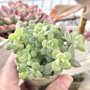 この時期、桜の名前の付く多肉を集めたくて昨日、神奈川から届いた苗🌸。淡いベージュからピンクに色づく、むちむち葉っぱを群生させる可愛らしい子。