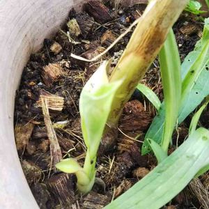 去年蒔いた実生ミニバナナ🍌がやっとお目覚め。子株も吹いてきた🎵