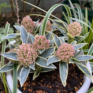 斑入りスキミア マジックマルロー✨ 花が咲き始めました🌸