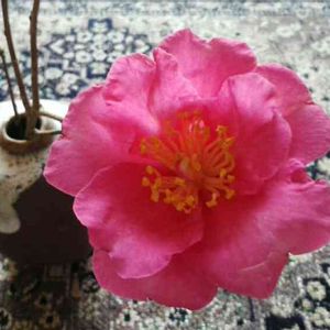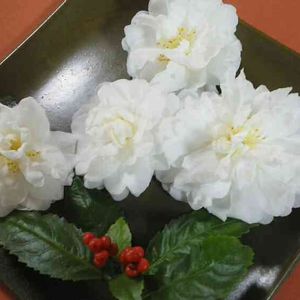 部屋の中へ サザンカと乙女椿を集めて🌼 3色揃い踏み
