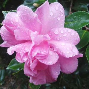 乙女山茶花が、雨に濡れて泣いているみたい⤵😢 お隣りのお庭をお散歩─♡