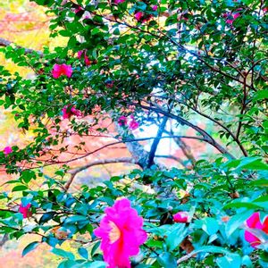 お出かけ先♪♪ 少し残ってたもみじとサザンカが綺麗でした🌺¨̮