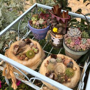 雨ざらしの方が、ミニサボさんも元気になるかなぁ〜💕 くるみさんの茶こしリースワークショップの時のミニサボを移動してみました😊