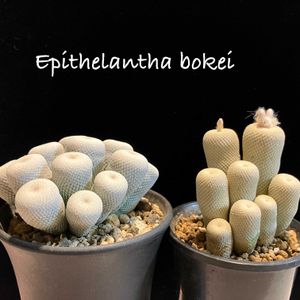 Epithelantha bokei 小人の帽子群生株 左はEpithelantha bokei super white ね