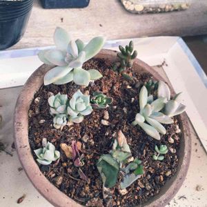 葉挿しの子たちをよせました。とりあえずな感じで… 初夏越し! 暑くなって2回もバラバラ事件に遭遇して 水やりのタイミングがわからない〜!! まだ平和だった2週間前ぐらいに 水やりしたっきり。 どうすればいいのかしら…