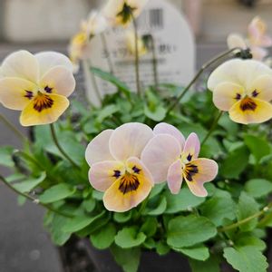 【ビオラ シェリルの片思い】 今季のパンジービオラの紹介はこれでおしまいでーす🎊 今日も園芸店をチラ見したけど我慢しました…😅 日陰庭だけど大きく育って欲しいです🪴🪴🪴
