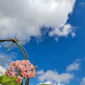 おはようございます♪ 今朝の #沖縄 の天気は晴れ! #ホヤクレメンシオラム ( #Hoyaclemensiorum )開花! 去年は開花確認できなかったので、久々♪ 花はカリストフィラ等に似ていますが、花柄が長く花同士の間隔が広い。 そして大きな葉硬い葉が特徴的! #畑仕事 #サクララン #Hoya