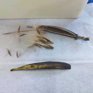 おはようございます♪ 今朝の #沖縄 の天気は晴れ! #ホウライカガミ の鞘が弾けていたので回収〜♪ 綿毛を摘んで1つの鞘から67粒採種! 早速播種します♪ #畑仕事 #食草 #オオゴマダラ