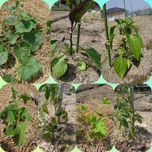 こんにちは😊 4月22日picから、少しずつ植え付けしてきた夏野菜です🌱 トマト4種類🍅 なすび2種類🍆 ズッキーニ2種類🥒プリンスメロン🍈 地這いキュウリ🥒 今朝の畑の様子~ 昨日の暑さで、少しぐったりしちゃってる…夕方には水やりしようと思います☺️ 後、オクラとウリの植え付けが残ってますが…最近の不安定な気候の為か苗の生育が遅れています💦💦 もう少し大きな苗になったら植え付け頑張りますp(^-^)q