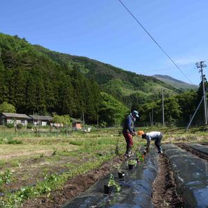 昨日までの雨とは打って変わって、 今日はいい天気❣️ 地域おこし協力隊と一緒に、 畑に苗を植えました。