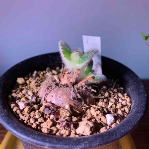 夏型コーデックスのシンニンギア・フロリアノポリス、冬眠するどころか花が咲きました😆 確かに寒くなってからは室内管理していましたが、暖房もない室内窓辺なのに💦 他のシンニンギアは葉っぱがモフモフですが、この子は茎と葉っぱの裏がモフモフです😍✨