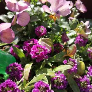 アンティークビオラとアリッサムの寄植え… み〜んな元気に咲いてくれてま〜す💞