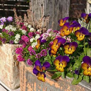 ヴィオラとアリッサムのポットを詰めた籠を…押し花アートをやっている方に…プレゼント 作品の中に入れてもらえるかしら(^-^)