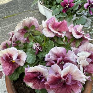 サザンカ🌸 花盛り❣️ 葉っぱ🌱も 花も 1番小さいタイプ....... この株🌲の中に スズメさん達が 降りて来て、入り込んで 休んで行 ってくれます❗️ 葉っぱ🌱で 覆われた、安全な鳥籠って 感じになります〜💓 今朝は お天気☀️だけど、風が本当に 冷たくなって来た‼︎‼︎😰 2枚目、3枚目 庭の真ん中でも 防寒用透明キャップを 被せました〜、鉢を 軒下に移動させる場所も 無いので、庭の真ん中で 頑張ってもらいます。。。 4枚目は 「山形育ちの贈り物 贅沢ビオラ」..... なんですが、買い易い値段だったのですが、品種名までは 分からなくって、、、とにかく ビオラさん🌸 5枚目は ビオラ トルニー💕 花数 増えて来ました〜❣️^_^ 週末 土・日は、スーパーも 品揃えが 良いです‼️ 何か 良い💖のを 1つでも。。。