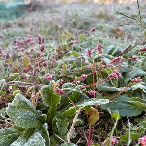 おはようございます❄️ 今朝…霜が降りました😬💦 0.7℃とか、0.9℃とか? 母親が朝から騒いでおりました(-。-; 昨夜、軒下の多肉さん達には、不織布を何重にもグルグル🌀して差し上げてましたので、大丈夫でしたが… 寒くなるスピードが早すぎて💦 戸惑います😵💫❄️ 写真は、今朝のお庭の様子✨ ヒャクニチソウ、菊の花も凍りついております😱❄️