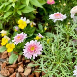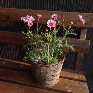 マーガレット シェリエメール ピンクの花🌸 赤いストックの横で,寄せ植えにしています‼️ 静岡産のお花はなかなか見つからなかったんですが やっと出会えました💗大切に育てたいな‼️