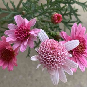 八重咲きマーガレット シェリエメールのピンクの花🌸 とうとうモリモリで、こんな感じになりました‼️ 万重咲き⁉️のようで,数えきれなーいです❣️