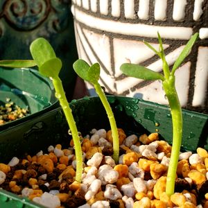 『蛇の目覚め』 音沙汰の無かった、カプトメデューサの種が、鎌首を上げました! 発芽の姿までヘビそっくり😲