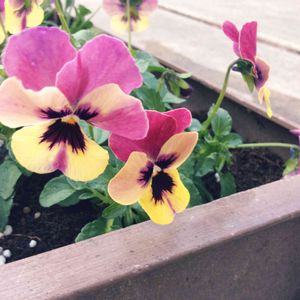 義母へのプレゼント用のビオラです✨ ビオラ3種ピンク系で寄せ植えしました。 全体はうまく撮れなかったのですが、一部です。 お母さんに渡すのは来週ですが、楽しみだなぁ😊 喜んでくれるといいなぁ😊