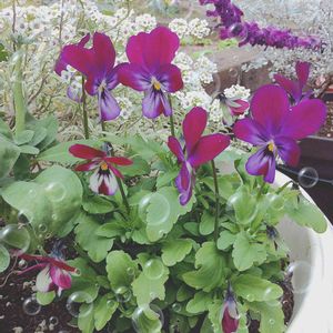 こんにちは😊 今日は陽射しありますが、気温上がらず、風が冷たいです。 うさぎ耳のビオラさんです🐇 一緒に写っているアリッサムもお気に入りです😊