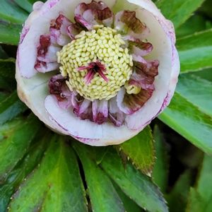 クリスマスローズ カラーリーフミックス。松村園芸 もうカット✂️しないと思いながら、蕾が沢山あるので様子を見てましたが、そろそろかな😄 今年お迎えした小さな株で、うちでは異色のクリスマスローズです。