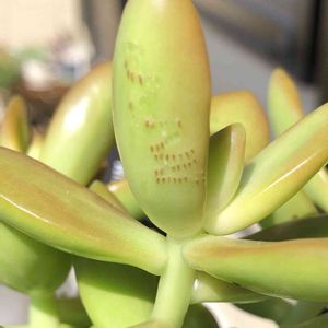 セダムの銘月(アドルフィー)さん 葉の後ろをふと見ると…こ、これは? カイガラムシのたまご?? でも爪で擦っても取れないし、なんか乾ききってるし。 こそいだら葉を傷つけてしまったからこれ以上はなにもやりたくない😢