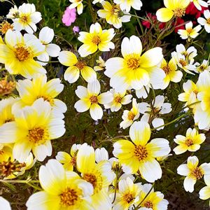 花壇に咲いていた ウインターコスモス 少しピンク色が差し色になり可愛いです! ウインターコスモス ストロベリーミルク キク科 ビデンス属