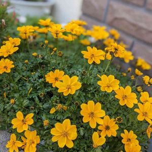 今朝の庭 ビデンスジュジュ ゴールド💛 (ウインターコスモス) 花切り戻し後、2度目の開花•*¨*•.¸¸♬︎