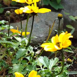 朝は雨でしたが、午後には時折晴れ間がでました☀️ 日が差した瞬間に撮影したら後ろに石があって、山野草っぽく撮れてびっくりです✨ 2年目のビデンス、ちょっと不細工ですが咲いてくれています💛💚💛