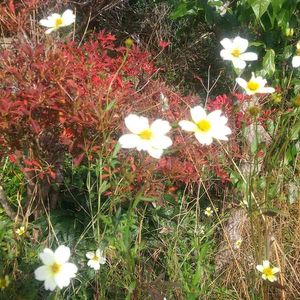 秋ですね! 紅葉したドウダンツツジとウインターコスモス🌿❤️🌼☀️♥️🌿❤️🌼☀️♥️🌿☀️♥️🌼☀️❤️🌿♥️🌼☀️❤️🌿 お天気が良く気持ちがいいな😃💐💕