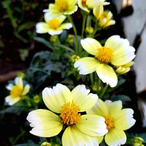 こんにちは😊🎶 ウインターコスモス🌼 イエローキューピット💛 北風が吹く頃でも、ふんわりと優しい色で咲くかわいらしい花です💕 コスモスとは別の種類ですが、花の咲いている姿が似ているので、ウインターコスモスという名前がついています😉 ちょうどコスモスの花のシーズンが終わり、入れ替わるようにウインターコスモスの花が咲き始めます✨✨ ウインターコスモスと言えば、この色が定番のイエローキューピット💛 花芯が濃い黄色で花弁が透き通るようなレモン色🍋、そして花びらの外縁が白❣️このグラデーションが爽やかでとても美しいです💖 この花は、日が短くならないと咲かないという秋の花ならではの特質を持っています❣️