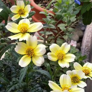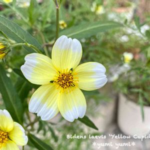 ウインターコスモス♡♡ 花びらが5枚のフィルリフォリア種**花びらの内側が黄色で外側が白色のイエロー・キューピッドという品種 👼 可愛くて~お迎えしました♡ 寒さに負けずに咲いてね💕