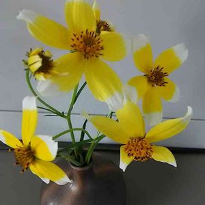 ウインターコスモス咲きました。小さい🌼 花瓶に水挿しでもらった子達です。