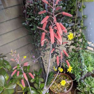 綺麗に咲いてきた🌵🏵ラウアイ(アロエ属)の赤い花🏵🌵と🌵🌻ルビーネックレス(セネキオ属)黄色い花🌻🌵 🏚我が家の庭の住人の紹介より🤗💞❣️