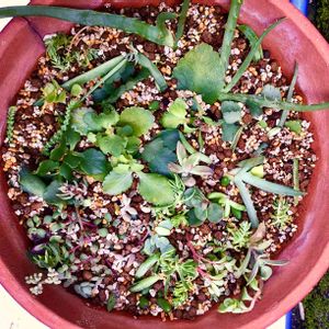 多肉ちゃんの寄せ植えです🤗 伸び伸びになったのを切り戻し、仕立て直しました(๑・̑◡・̑๑)❤️💚💜 もう少し大きな鉢に茎挿し、葉挿し等して主人が作ってくれた小さな温室に入れました(╹◡╹)♡ 株元のこの寄せ植えも育ってくれたら良いのにと思っています😍😍😍☘🍀🍃🌿🌱💚💚💚💚💚