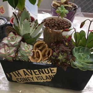 初めてワークショップに参加して、多肉植物の寄せ植えのやり方を先生に教えてもらいました。とてもオシャレに出来ました😁