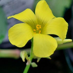 こんばんは~😆 日中は穏やかなお天気でしたが、 夕方から冷たい風が吹きました😣 今日のお花 ~オキザリス~ です💠 鮮やかな彩りで咲いています💛 ダメになったかと思っていましたが、 ツユクサに紛れて一輪咲いてました✨ [ 6月下旬のpic ]