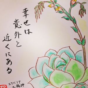 今日のお花は、『エケベリア・七福神』 前に家のエケ子をモデルにしたものですけど。 (ФωФ)もうすぐ咲くよ~♪って言ってる感じがしたんさね。 たまたま、テレビで流れてたCMソングが気に入っててよく口ずさんでたもんで。 実物じゃないけど たまには、いいでしょ♪