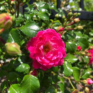 こんにちは今日は暑くなりそうです予想気温28度😂 眩し過ぎて光っちゃってますけど、スパニッシュビューティー咲き始めました〜🌸