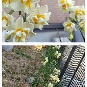 義母の北側に並べて植えた水仙達。 孫の晴れ姿を見た義母はゴキゲン☺️💕💕 その後に車で会場に向かうと大渋滞。行きは次男本人が運転したけど帰りも結構渋滞、疲れた…😥親バカ😰💦💦