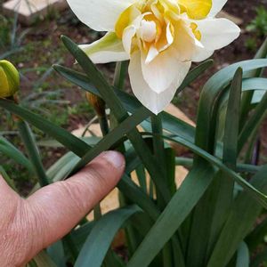 たぶん… 去年植えの水仙さん これは… どうなったら完全に咲いたことになるんですかね…😓 花が重すぎて支えが必要です😓
