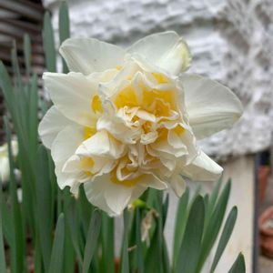 秋に植えた球根のお花が本日ようやく開花してくれました*\(^o^)/* 八重咲き水仙と、教えていただきました♡