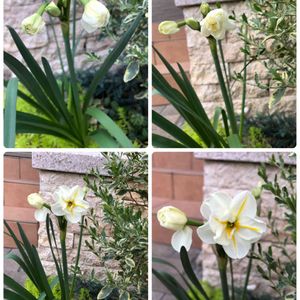 八重咲き水仙 レプリート✨ 蕾から花が咲いていく様子です🍀 花びらがエイリアンっぽい感じがします😆