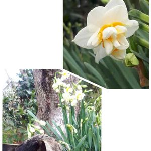おはようございます☔ 職場の八重咲きの水仙です。 四角の中は12月6日投稿の花。 だいぶ様子が違っていたので驚きました。 白、黄、白、黄と花弁が重なりあってます。