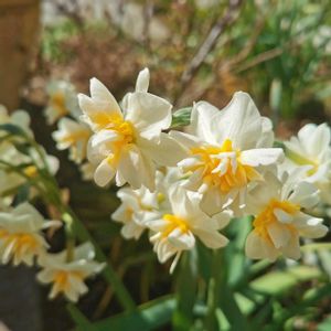 たくさん咲きました🌸 風で途中で折れたので活けました🌸 3年前購入時は20cm位のミニ水仙で小さかったのに何故か50cm位に伸びてます (花の大きさは変わらない🌸) もうひと種類買ったけど見当たらない