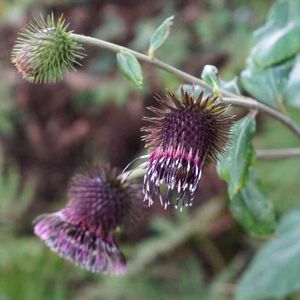 🌸 オヤマボクチ 🌸 漢字:雄山火口 花期:9~10月 背丈:100~150cm 花径:4~5cm 名前の由来:葉の裏の繊維を、火起こしの火口(ほくち)に使われたことから。 *花言葉*『たくましい』 背丈も花も大きくて、圧倒的な存在感!! 長い間見とれてしまいました❇️✨ 蕾から開花まで、形と色合いが変化します💚💜 10月末🗻南高尾にて🍀